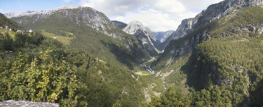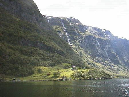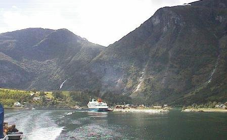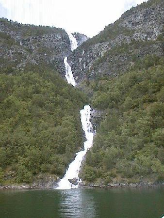 'Norway in a Nutshell' is one of the most popular round trips in Norway. Sold through NSB (the Norwegian Railway), it takes you through some of the loveliest scenery in Fjord Norway. We started in Oslo, taking the train to Myrdal. There we changed trains to the Flåm line, which goes almost straight down the mountainside. In Flåm, we got on the Express ferry to go through Aurlandsfjord and Nærøyfjord, both arms of Sognefjord, Norway's longest fjord. Arriving at Gudvangen, we take a bus up the mountain on the Stalheimskleivane with 13 hairpin turns and spectacular views. The bus let us off at Voss, where we continued to Bergen by train.